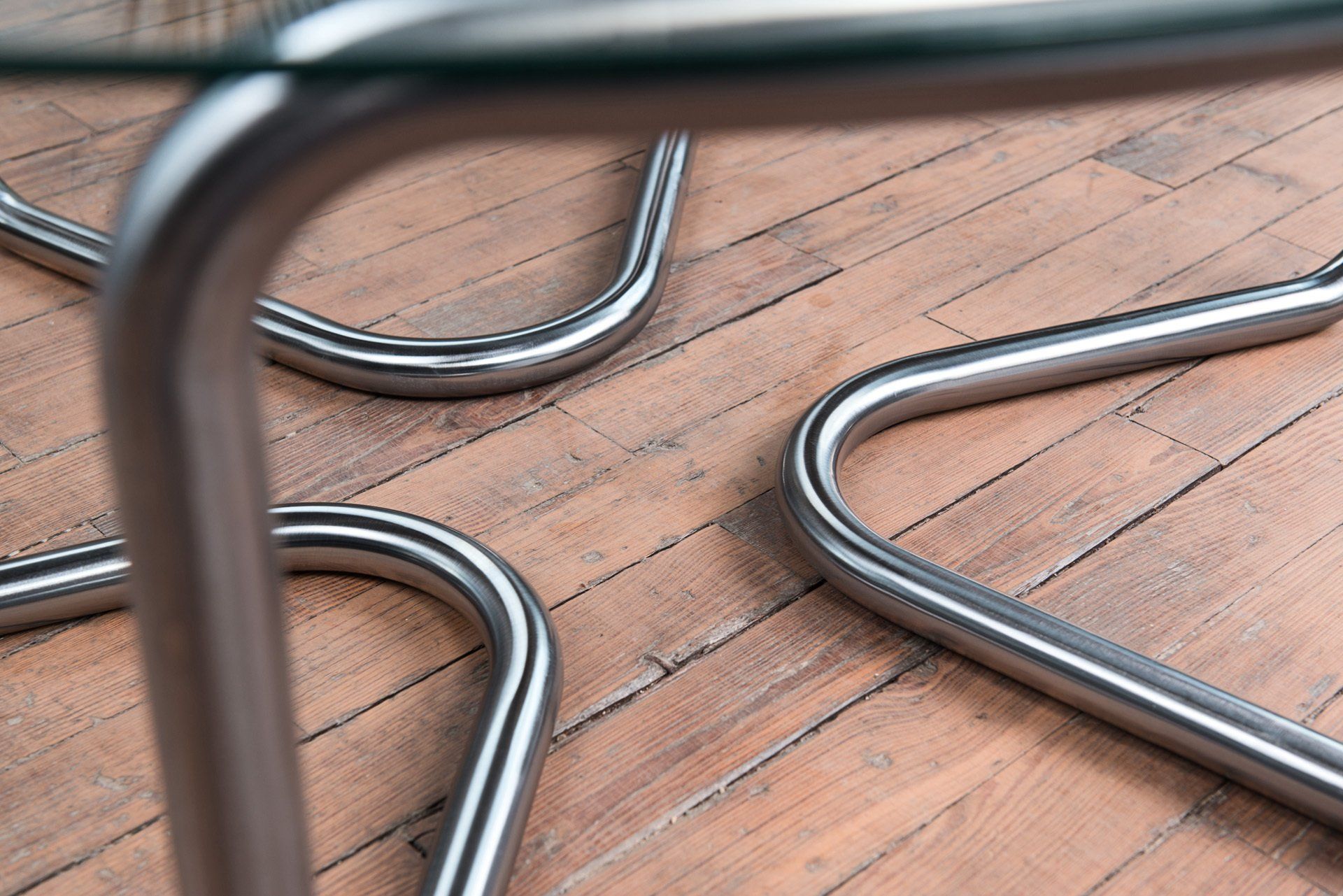 Mae pob un o'n fframiau wedi'u gwneud o diwbiau dur di-staen wedi'u weldio TIG gyda phennau bwrdd gwydr gwydn sy'n bodloni'r holl safonau diogelwch perthnasol. Darperir traed addasadwy i gyfrif am leoliad ar loriau anwastad. Ochr yn ochr â'n dewis tiwbaidd, rydym yn croesawu ceisiadau dylunio pwrpasol. Mae gennym gynhyrchion eraill ar y gweill sy'n ategu ein dyluniadau bwrdd coffi cyfredol. Mae'r rhain yn cynnwys byrddau ochr, byrddau consol a meinciau a byrddau awyr agored. Mae'r rhan fwyaf o'n hallbwn ar gyfer y farchnad breswyl, er y gallwn hefyd deilwra ein darnau i ymgorffori lliwiau corfforaethol neu frandio i'w gosod mewn derbynfeydd cwmnïau a mannau cymunedol.